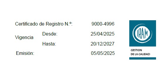 SELLO ISO 9001:2015 Descargar PDF ISO 9001-2015 SELLO DE CONFORMIDAD CON NORMA Descargar PDF ARNESES ANTICAIDAS, CABOS DE AMARRE ANTICAIDAS Y CABOS DE SUJECION ARNESES ANTICAIDAS 130 Kg. CINTURONES DE SUJECION SALVACAIDAS LINEAS DE ANCLAJE CONECTORES DE ANCLAJE Descargar PDF CERTIFICACION ANMAT Descargar PDF INDUMENTARIA DESCARTABLE MASCARILLAS MASK COVER - PDF